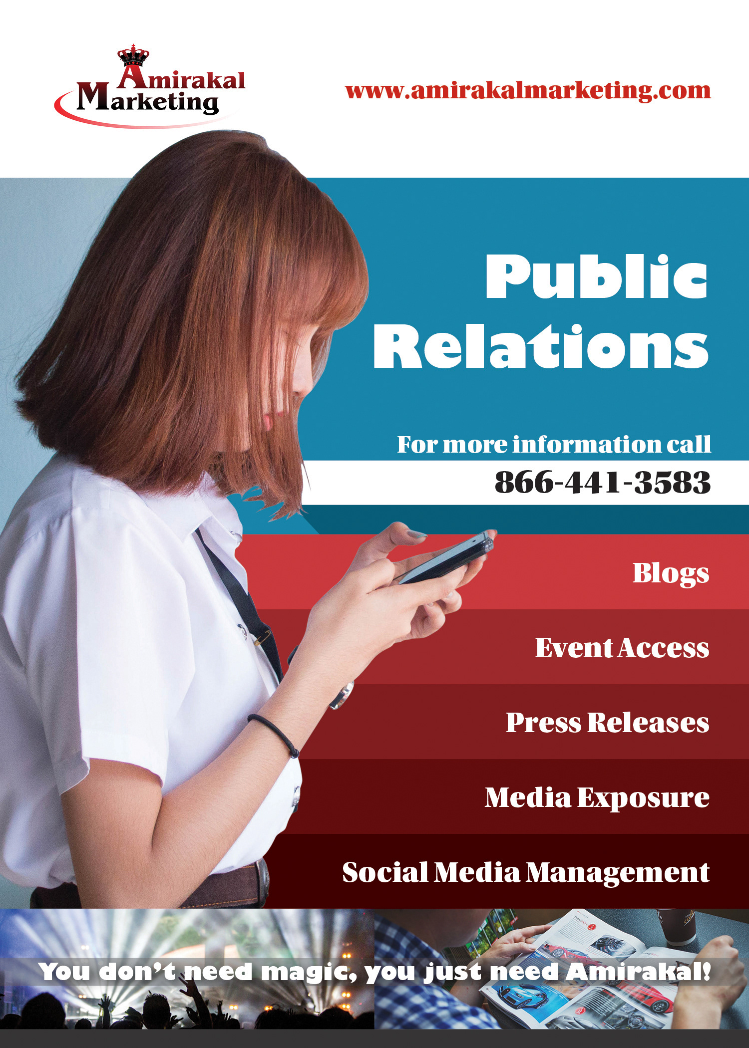 Adobe InDesign. Flyer for Amirakal Marketing.